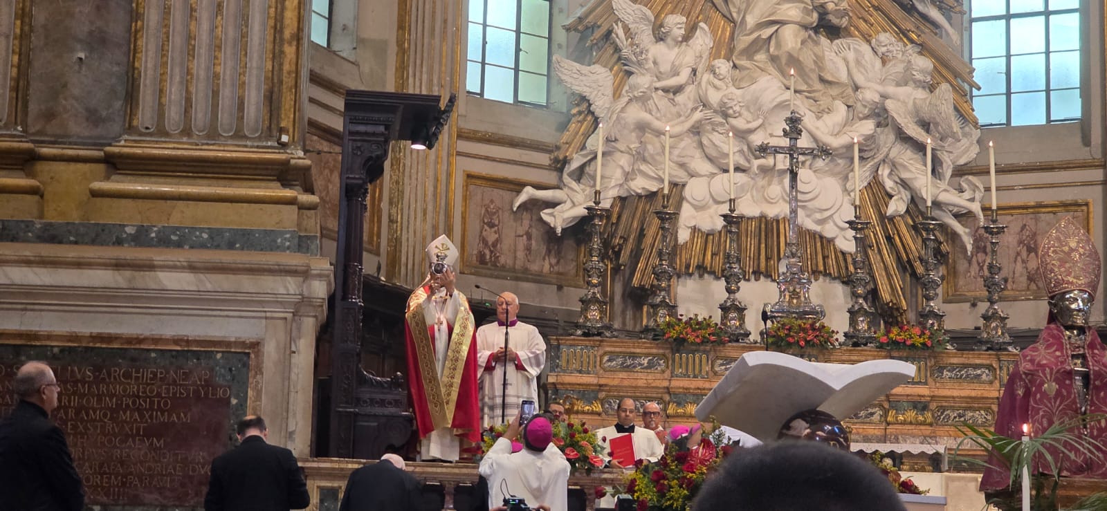In occasione dei Primi Vespri che hanno aperto la 75ª Settimana Liturgica Nazionale, sono stati esposti in via del tutto eccezionale nella Cattedrale il busto e l’ampolla con il Sangue di San Gennaro. Alle ore 17.50 è stato dato l’annuncio dell’avvenuta liquefazione del Sangue del Patrono di Napoli.