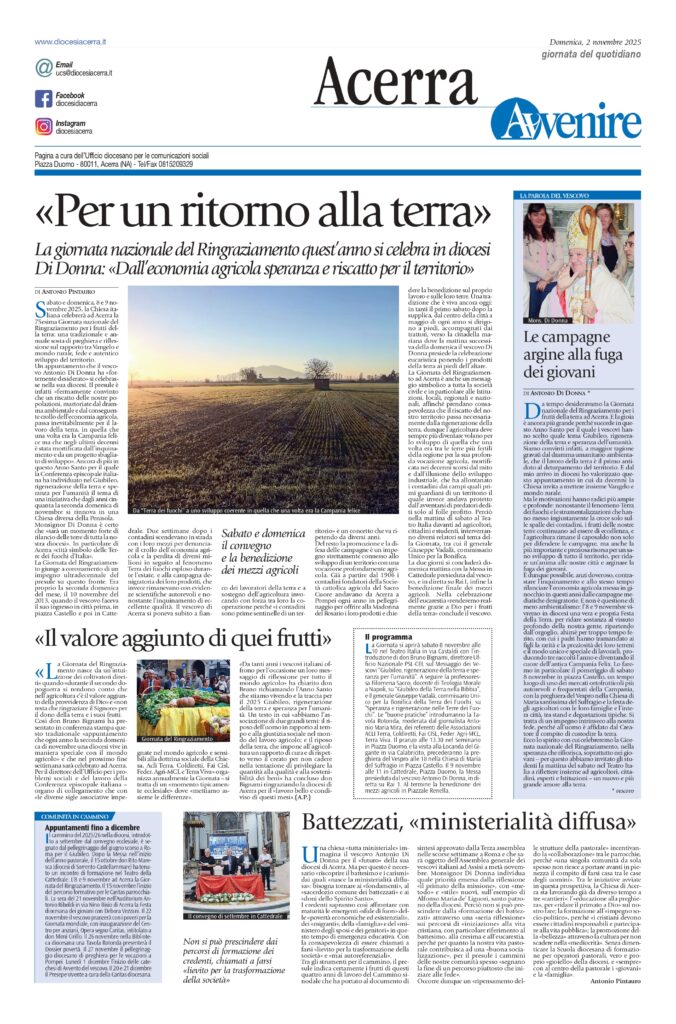 news Avvenire – Giornata del quotidiano 6 Novembre 2025 Pubblichiamo la pagina della Diocesi di Acerra del quotidiano Avvenire di domenica 2 novembre 2025. Condividi… Facebook Whatsapp Twitter Telegram Messenger Leggi la pagina in pdf