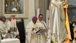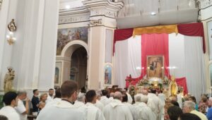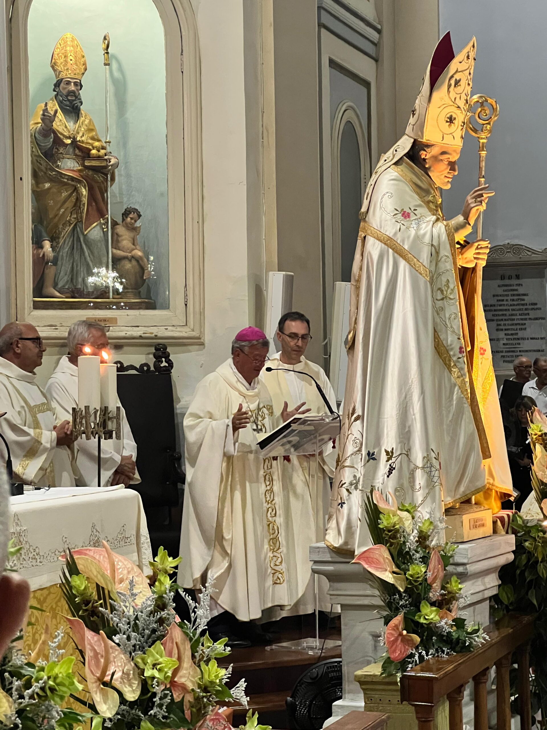 «E’ motivo di profonda gioia essere radunati dal Signore nella festa solenne del nostro grande sant’Alfonso Maria de’ Liguori». La sera del primo agosto a Santa Maria a Vico il vescovo Antonio Di Donna introduce la celebrazione eucaristica in onore del «patrono della diocesi di Acerra» e chiarisce che «ogni anno c’è la consuetudine ormai di girare le parrocchie, le chiese intitolate a lui nella nostra diocesi». E nel 2024 «è il turno di San Nicola Magno, in cui siamo radunati, che è la chiesa sua, voluta e costruita da lui quando era vescovo di Sant’Agata de’ Goti». Perciò, continua il presule all’inizio della messa, «prepariamoci a celebrare con impegno e con gioia questa celebrazione da cui trarremo l’insegnamento necessario per vivere sia come presbiteri, come vescovi, e come laici e laiche tutti i giorni».