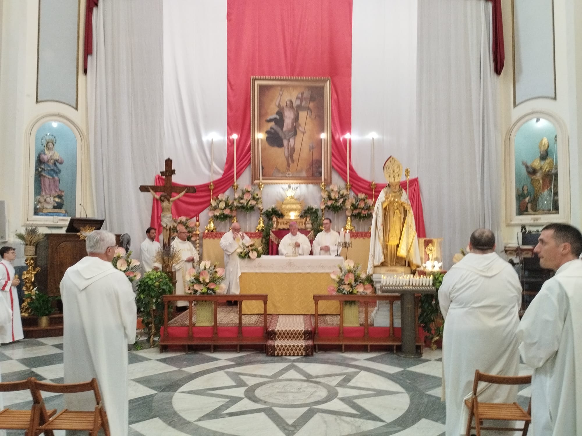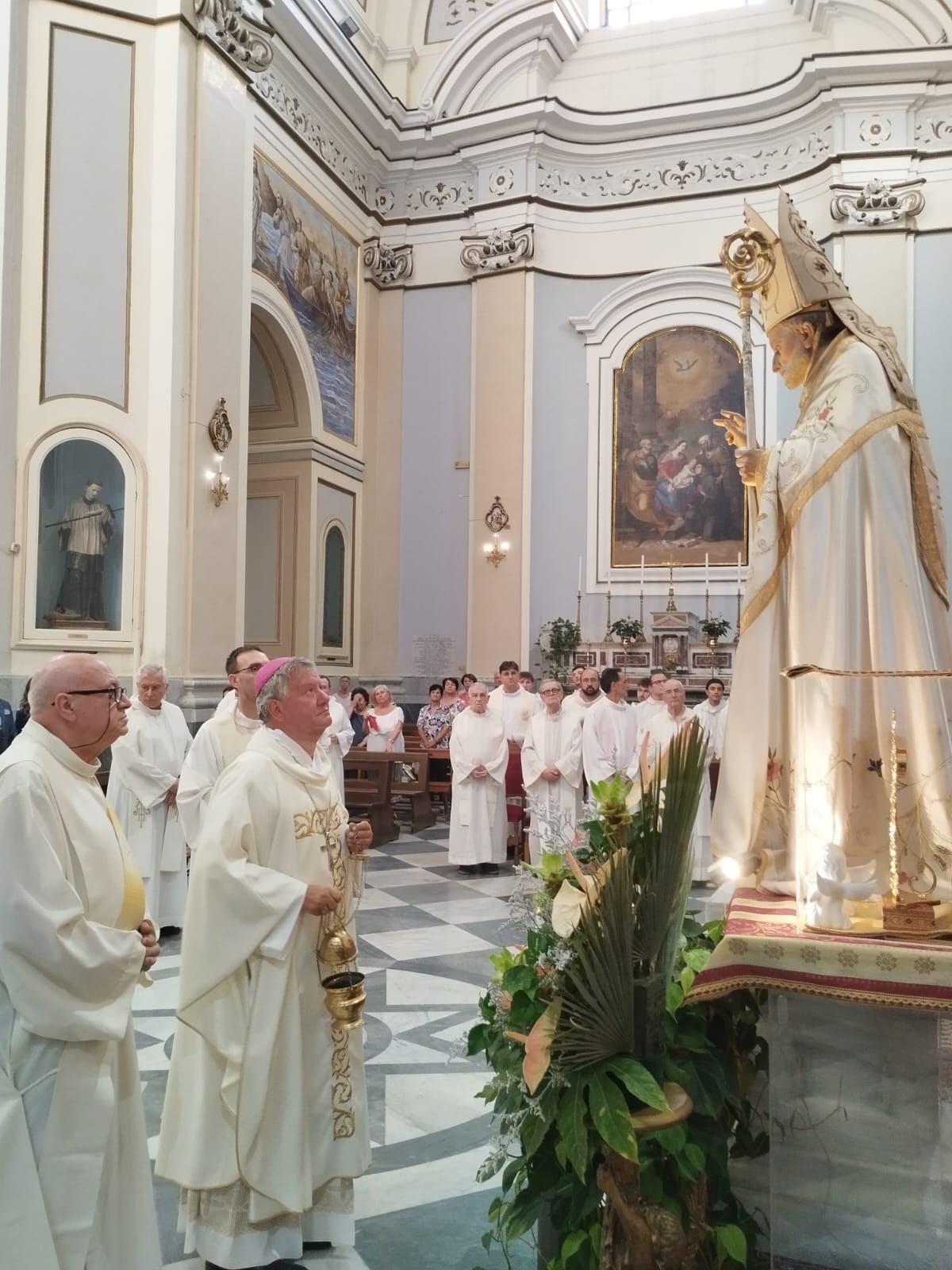 Al termine della messa concelebrata dal vicario generale don Cuono Crimaldi e da diversi sacerdoti della diocesi, il parroco di San Nicola magno don Carmine Pirozzi ringrazia il Signore per questa «bella celebrazione» e invita a prendere un rinfrescante «sorbetto» e ad assistere i suggestivi «fuochi d’artificio» che si levano dall’edificio in piazza Roma di fronte alla Chiesa.