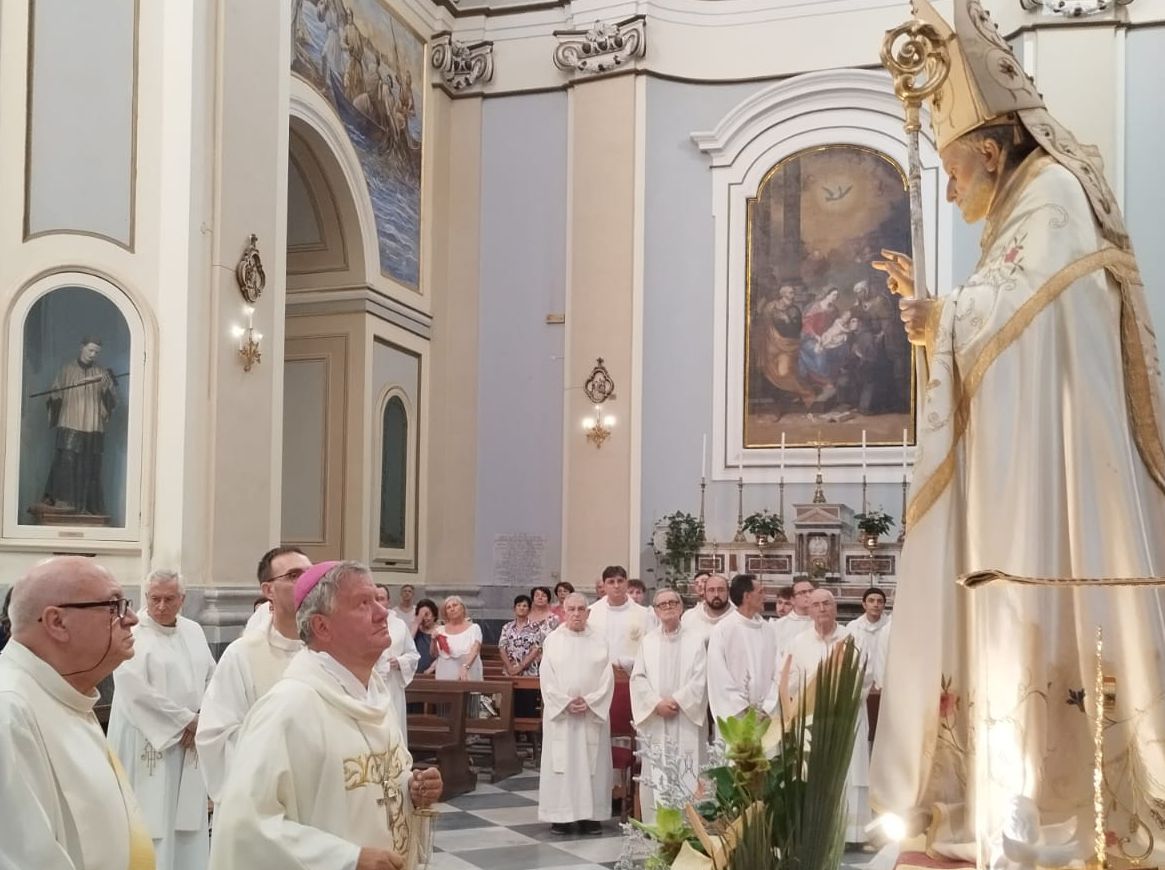 Il vescovo ringrazia a sua volta il parroco per la bella «ospitalità» e i sacerdoti presenti «nonostante la calura» ed esorta il sindaco Andrea Pirozzi in prima fila tra i banchi della chiesa affinché Santa Maria a Vico sia «sempre degna e all’altezza di sant’Alfonso» che con questa città ha avuto «particolare legame quando era vescovo a Sant’Agata de’ Goti» tanto da «desiderare questa stessa chiesa».