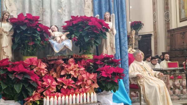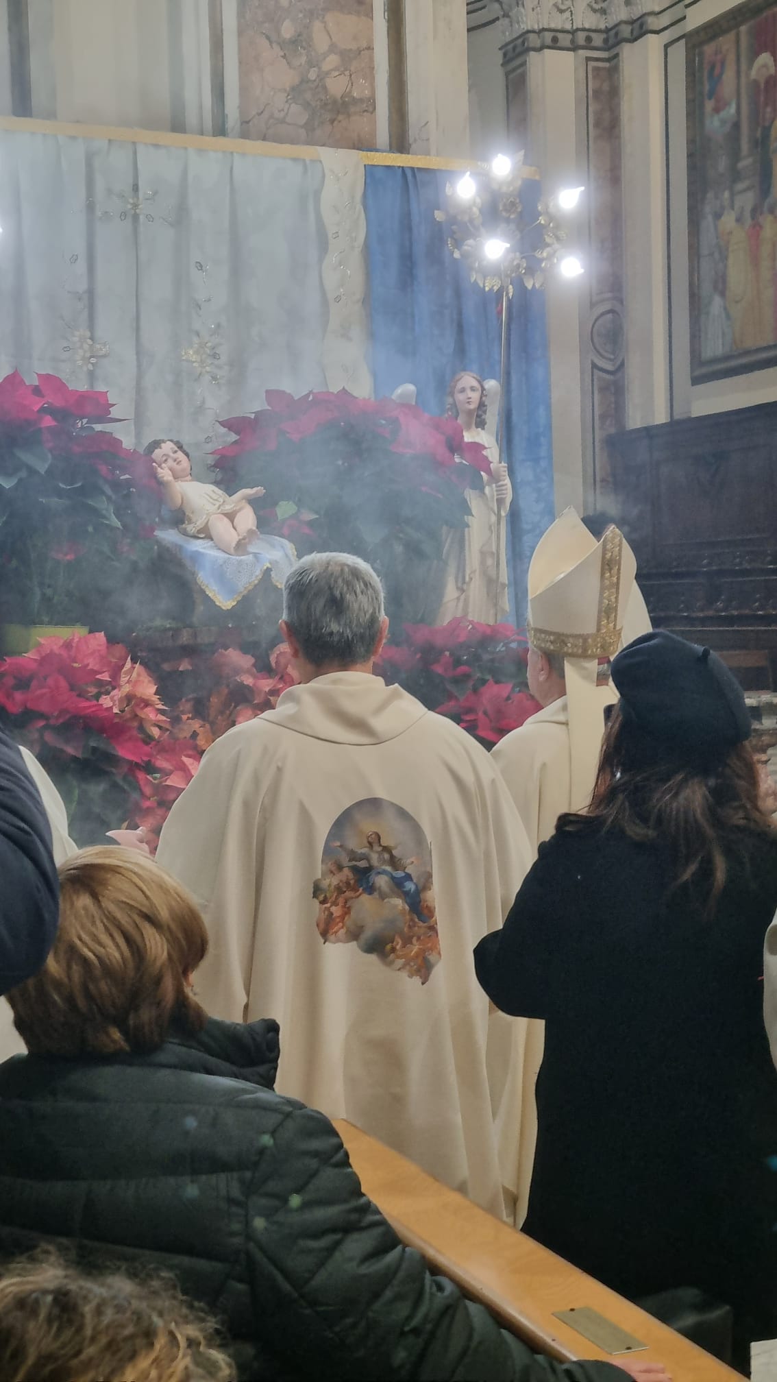 - Oggi, ancora una volta, 2025, noi facciamo memoria della prima venuta storica di Dio in mezzo a noi. Si è fatto uomo veramente, vero uomo e vero Dio, Gesù Cristo. Dio si è impegnato, si è sposato, ha fatto alleanza per sempre con noi. Un matrimonio indissolubile, in guerra o in pace, nella buona o nella cattiva sorte. Per il grande sant’Agostino Dio ha firmato una cambiale con l’uomo, si è alleato. E questo è il motivo della nostra gioia!
