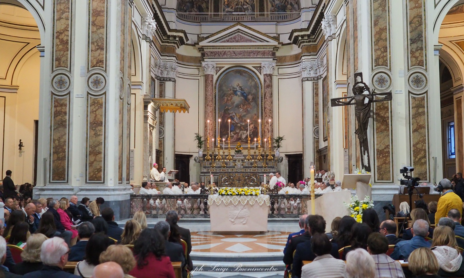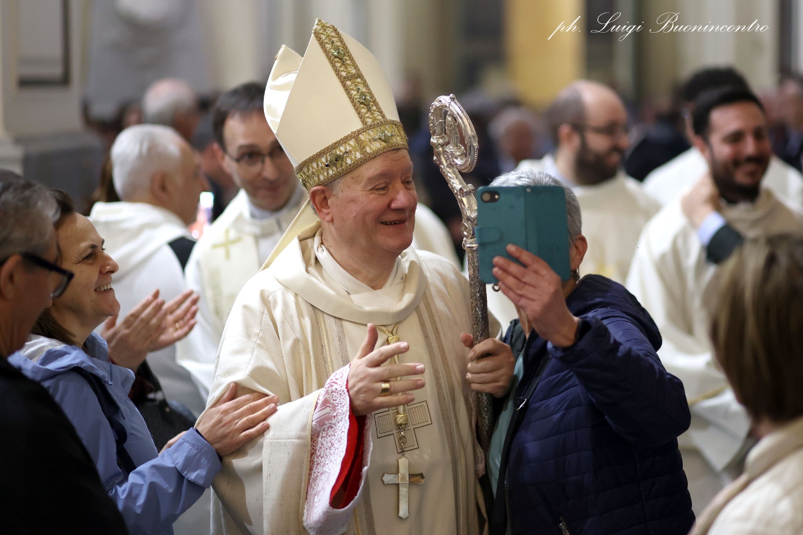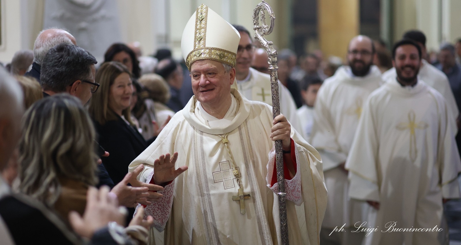 Pubblichiamo l’omelia integrale pronunciata dal vescovo di Acerra in Cattedrale la sera del 14 aprile 2026 per l’anniversario della sua ordinazione presbiterale. Alla concelebrazione in un Duomo gremito di persone hanno preso parte molti vescovi della Conferenza episcopale campana di cui il presule e presidente, i sacerdoti della nostra diocesi ma anche da altre città della Campania e migliaia di fedeli dalle nostre parrocchie e da comunità ecclesiali di altri territori. Presenti familiari e amici del presule, autorità civili e militari.