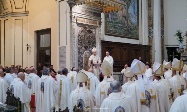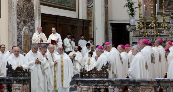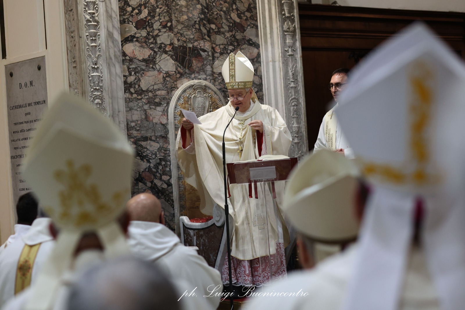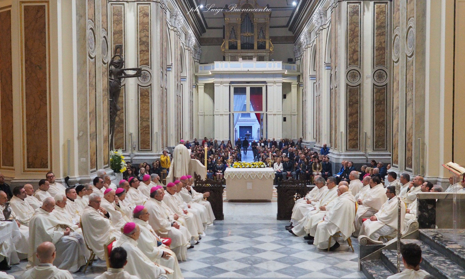 Pubblichiamo l’omelia integrale pronunciata dal vescovo di Acerra in Cattedrale la sera del 14 aprile 2026 per l’anniversario della sua ordinazione presbiterale. Alla concelebrazione in un Duomo gremito di persone hanno preso parte molti vescovi della Conferenza episcopale campana di cui il presule e presidente, i sacerdoti della nostra diocesi ma anche da altre città della Campania e migliaia di fedeli dalle nostre parrocchie e da comunità ecclesiali di altri territori. Presenti familiari e amici del presule, autorità civili e militari.
