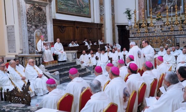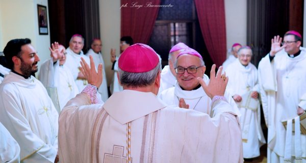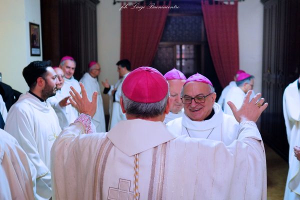 Saluto in particolare i cari fratelli vescovi: vi ringrazio di cuore, sono contento della vostra partecipazione, segno dell’affetto e della stima verso la mia persona e nei confronti della Conferenza episcopale campana di cui facciamo parte. Grazie!